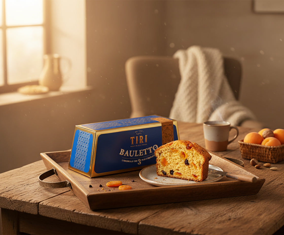 The refined melting of gianduia chocolate goes perfectly with the sweet and succulent taste of candied apricots. To preserve this mix of delicacy, we think the soft dough long leavening, the same that made our Panettone, a real object of desire.