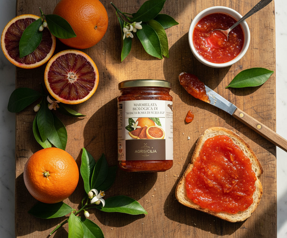 Organic Sicilian Red Orange I.G.P. Marmalade captures the authenticity of the island’s prized organic blood oranges with their prized peels. This artisanal treat embodies Sicilian purity, combining the juicy sweetness of organic blood oranges with the natural touch of cane sugar. The zests enrich the aroma, offering a jam with lively and genuine flavors. I.G.P. certified, it represents quality and local tradition, ideal for healthy breakfasts.