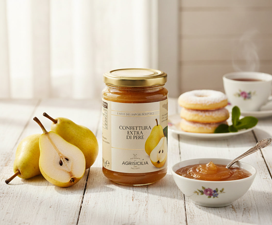 Extra Pear Jam celebrates the unique and sweet flavor of this juicy fruit. The artisanal delicacy captures the fruity and sweet essence of pears, offering a rich and delicious jam. Perfect for breakfasts or desserts, it represents the freshness and sweetness of pears in every spoonful, giving a satisfying and pleasant tasting experience.