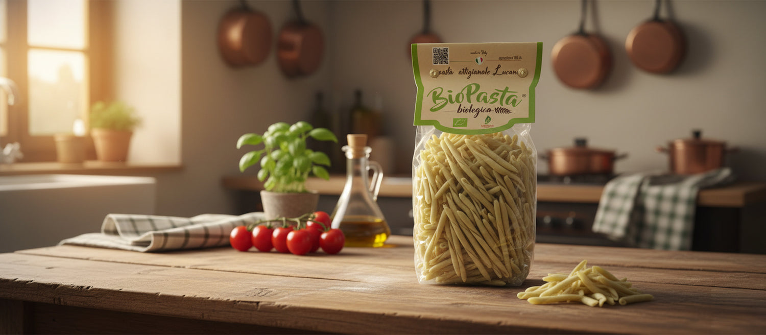 Our Organic Dry Pasta is made with 100% organic durum wheat semolina ORGANIC ; coming from crops in Southern Italy . (Basilicata, Puglia, Calabria and Sicily)